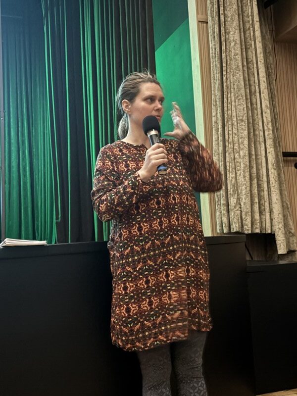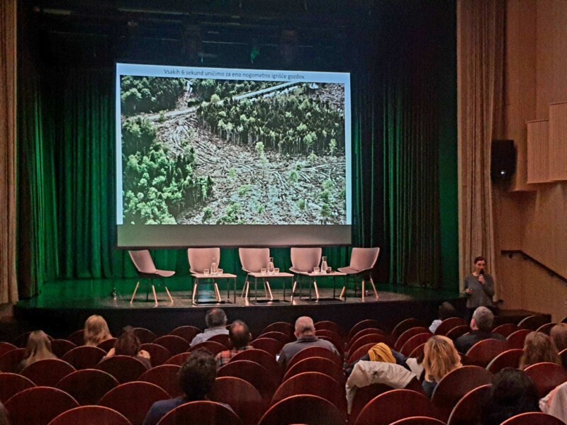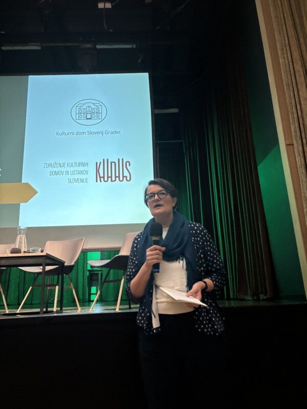 Na uvodnem predavanju Pospeševalnik zelenih veščin v kulturi je Gaja Brecelj (Umanotera) predstavila širši kontekst okoljske krize in izpostavila pomen kulture pri odzivanju nanjo. Opozorila je na ključna dejstva: na svetu vsako leto proizvedemo okoli 380 milijonov ton plastike, od katere večina konča v okolju, zaradi intenzivne rabe naravnih virov pa je vse manj rodovitne zemlje in gozdov, kar slabša pogoje za kmetijsko pridelavo in biotsko raznovrstnost. Podnebne spremembe niso več oddaljena grožnja – globalna povprečna temperatura se je dvignila za približno 1,4 °C glede na predindustrijsko obdobje, Slovenija pa se segreva dvakrat hitreje od svetovnega povprečja, kar se kaže v vse pogostejših in intenzivnejših sušah, požarih in poplavah.
